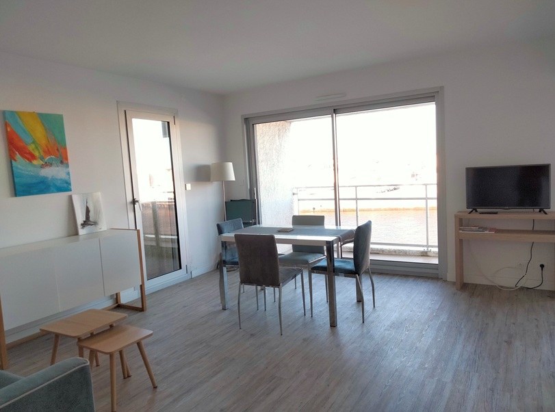 entrée, séjour avec canapé lit 2 personnes, tv, chambre sur chenal avec lit 160, cuisine aménagée et équipée (plaque vitrocéramique, four, lave-vaisselle, micro-ondes, réfrigérateur), wc, lave-linge.