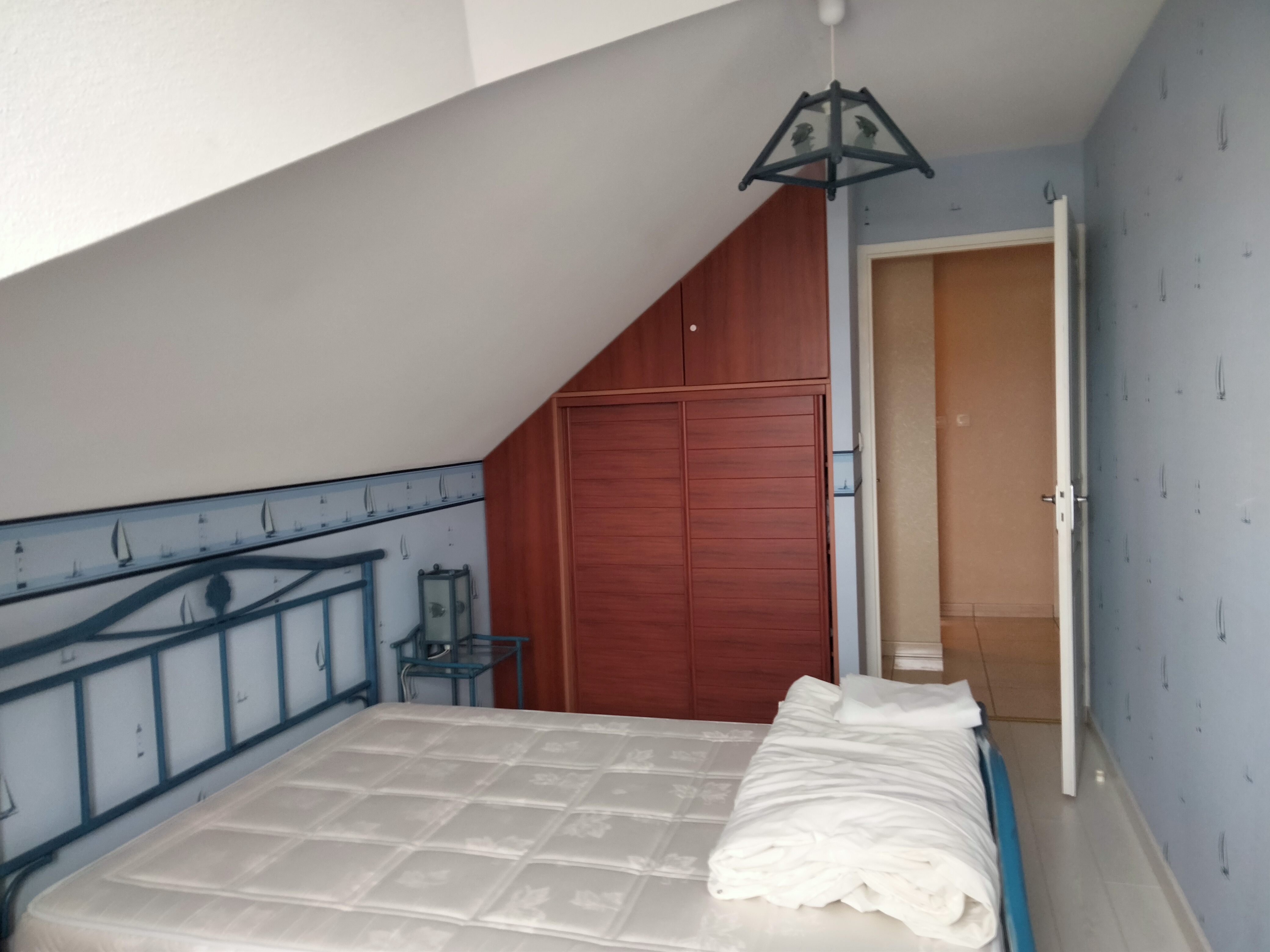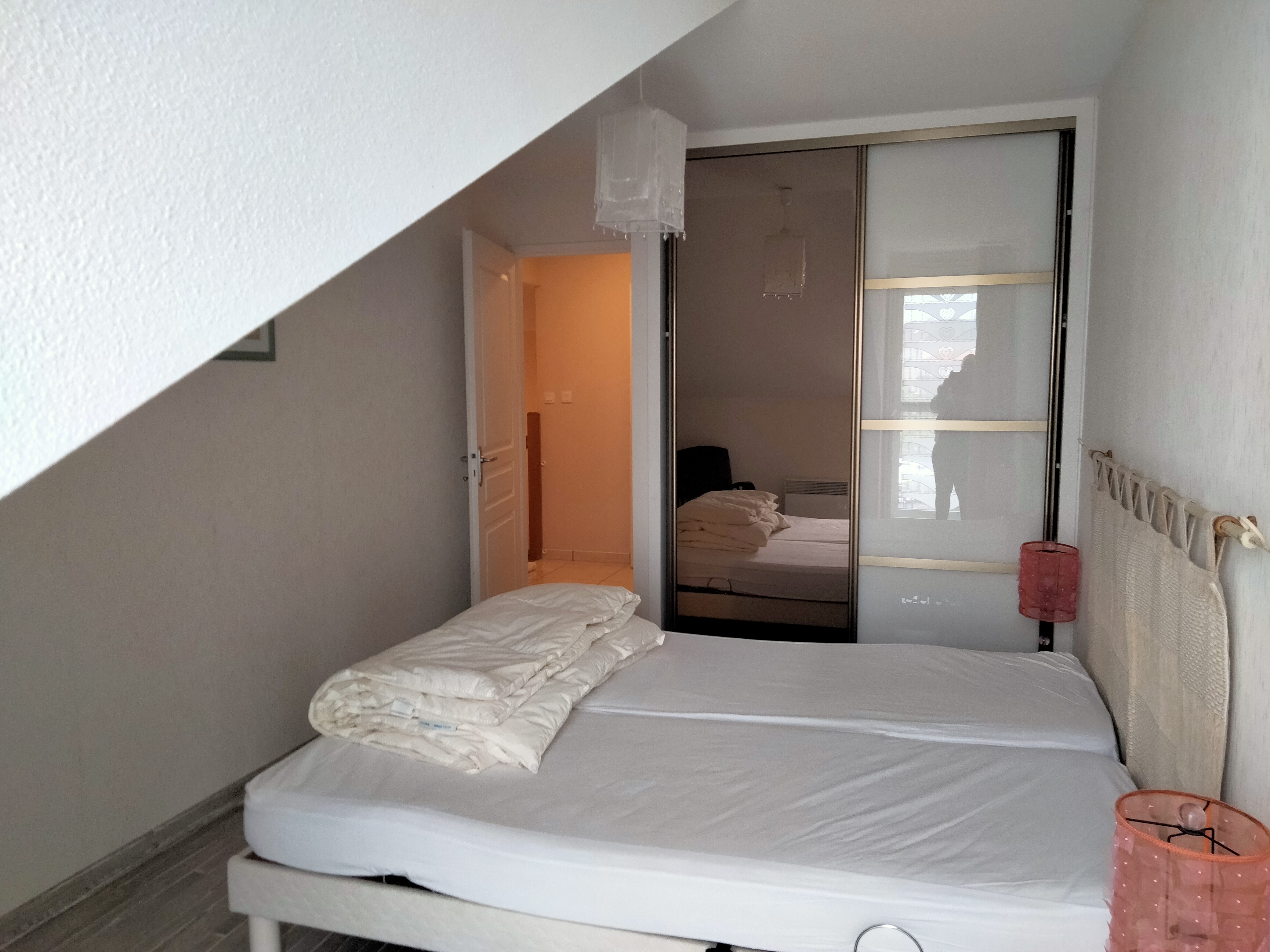 Proche rues piétonnes, plage et port, Très bel appartement au 3ème et dernier étage d'une résidence avec ascenseur et interphone. Entrée - Salle d'eau (wc,douche,vasque) - Placard - Séjour/salon (méridienne, écran plat) avec cuisine A/E (réfrigérateur, congélateur, four, lave-vaisselle, micro-ondes, évier deux bacs inox, plaque vitrocéramique avec régulateur de température, hotte circulaire). aspirateur rowenta sans fil 130 watts. Terrasse ensoleillée avec salon de jardin 2 - chambres en duplex avec placards - 1 chambre (1 lit 140) - 1 chambre (grand lit de 2 matelas de 80) - Salle de bains (vasque sur bandeau, baignoire, sèche serviette) - wc -Buanderie avec lave-linge. Parking privé fermé dans la résidence. WI FI.