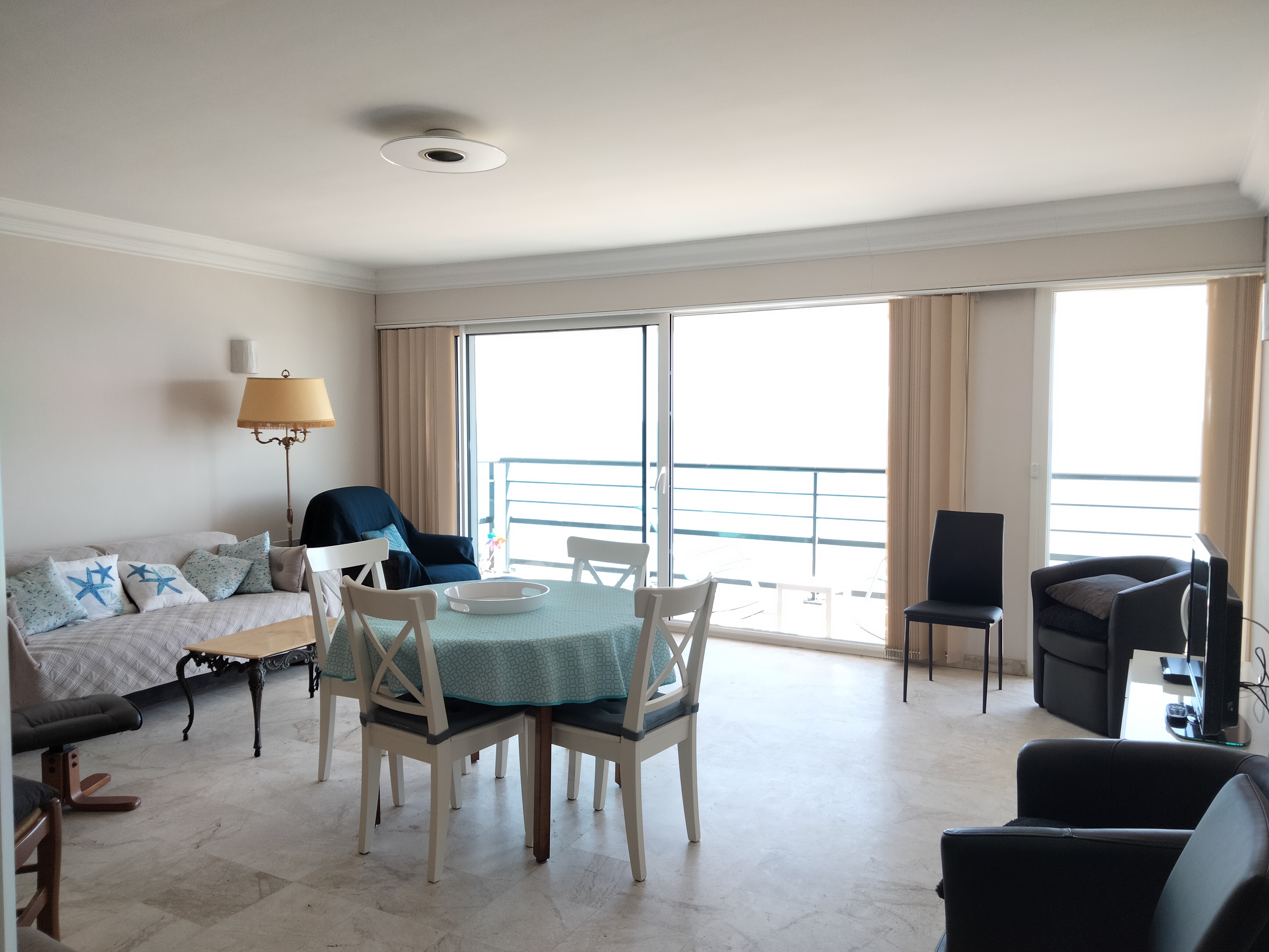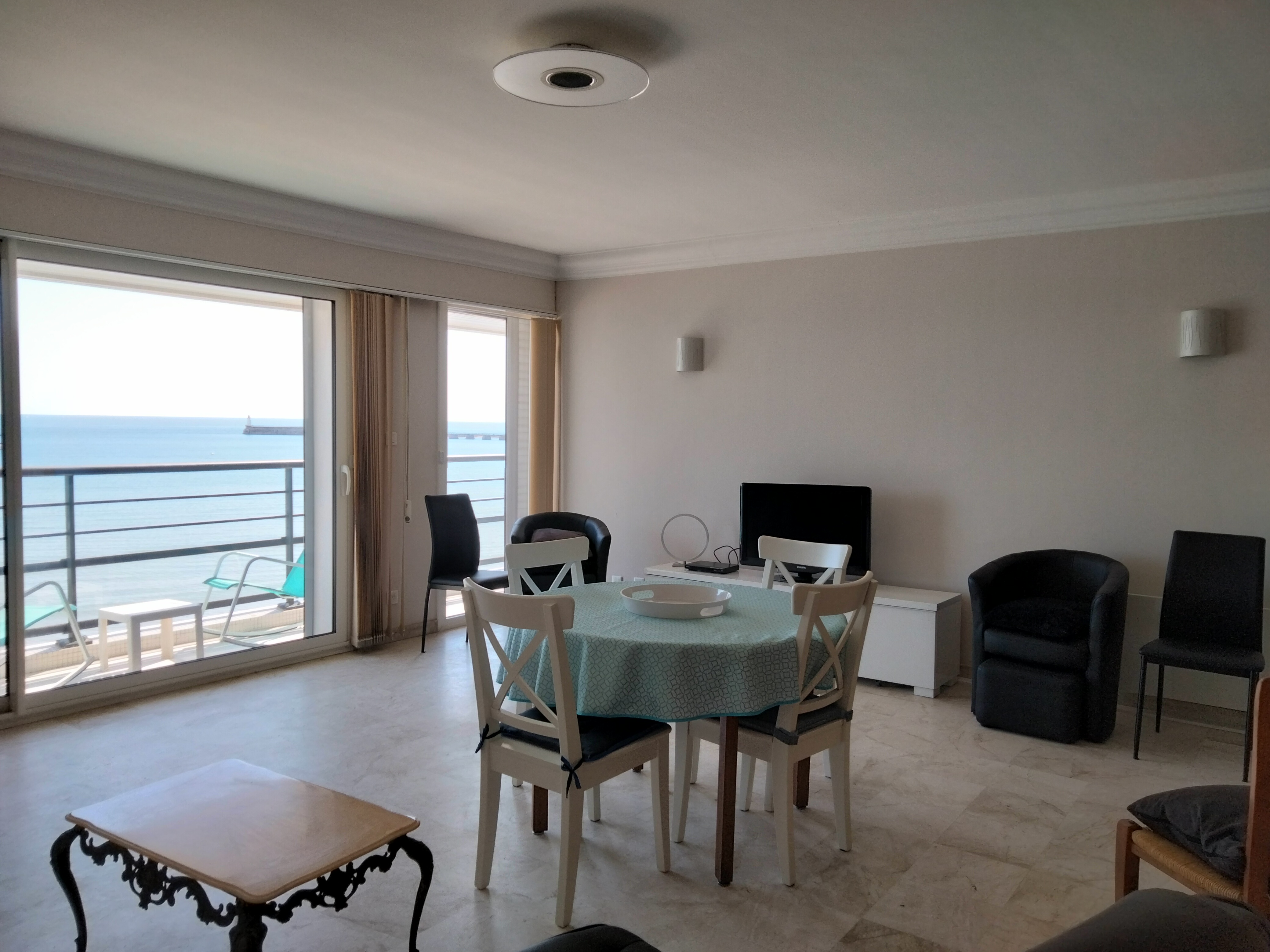 Séjour face mer avec balcon : 1 canapé-lit 2 personnes - Télévision écran plat - volets électriques