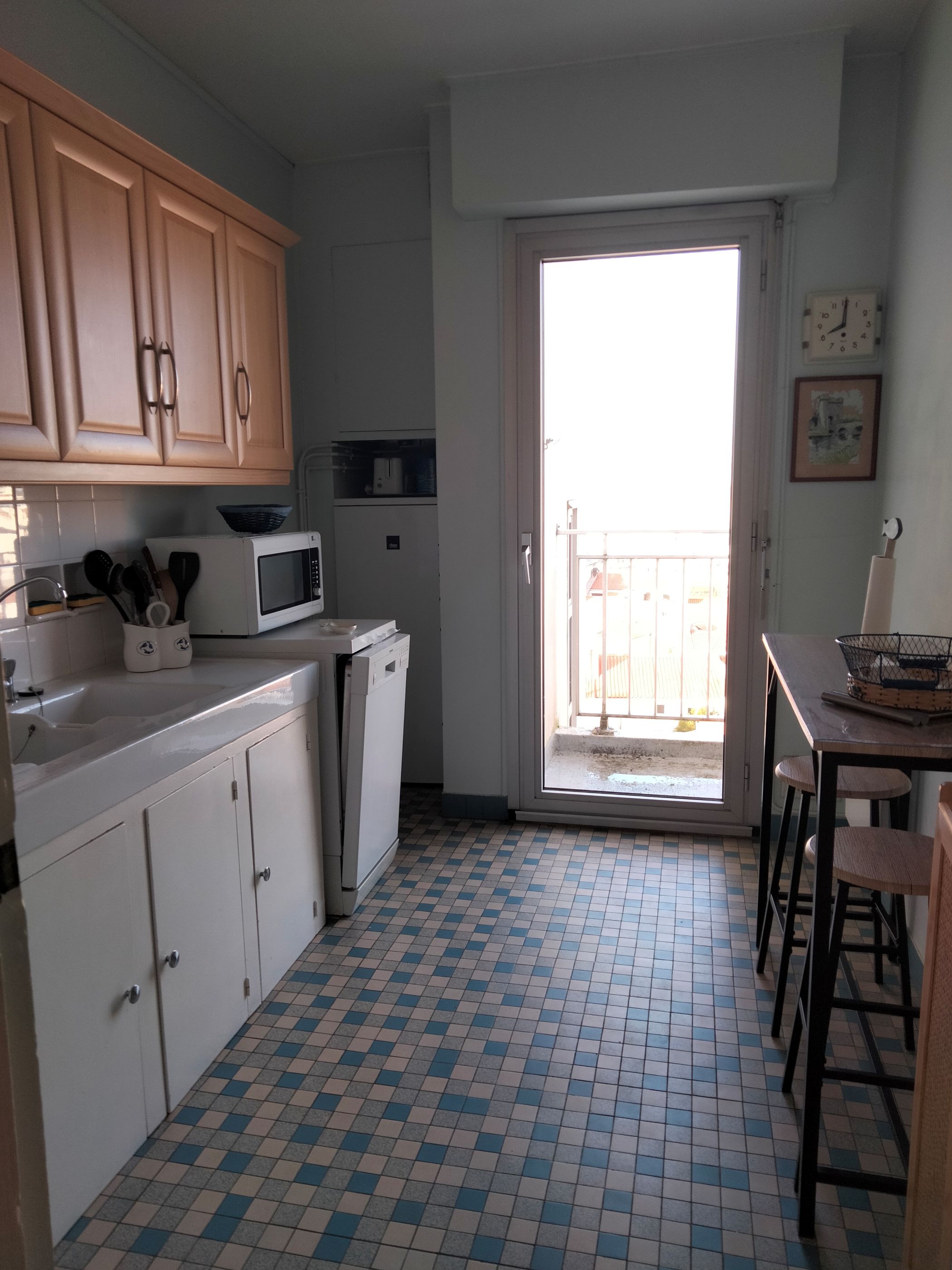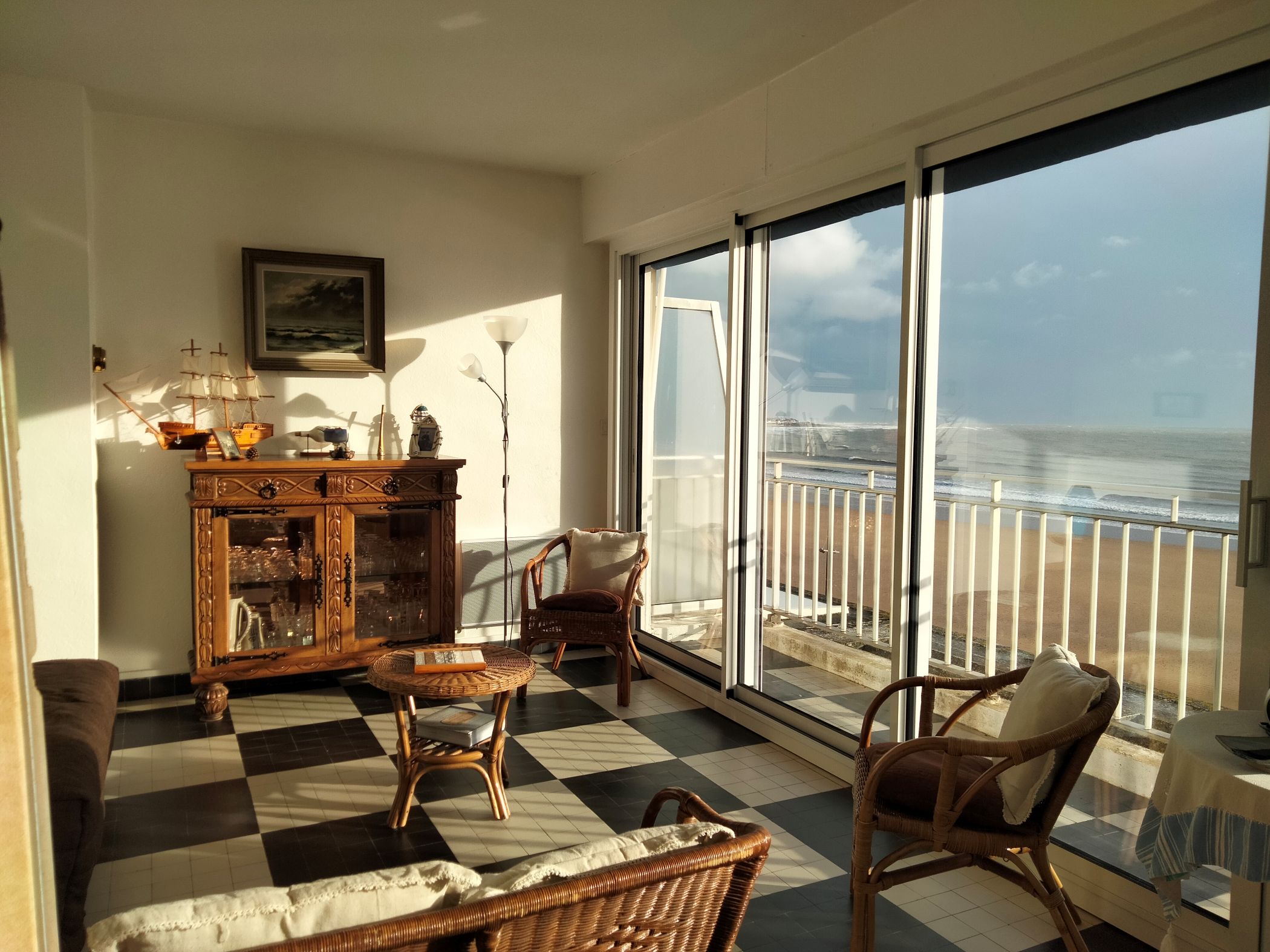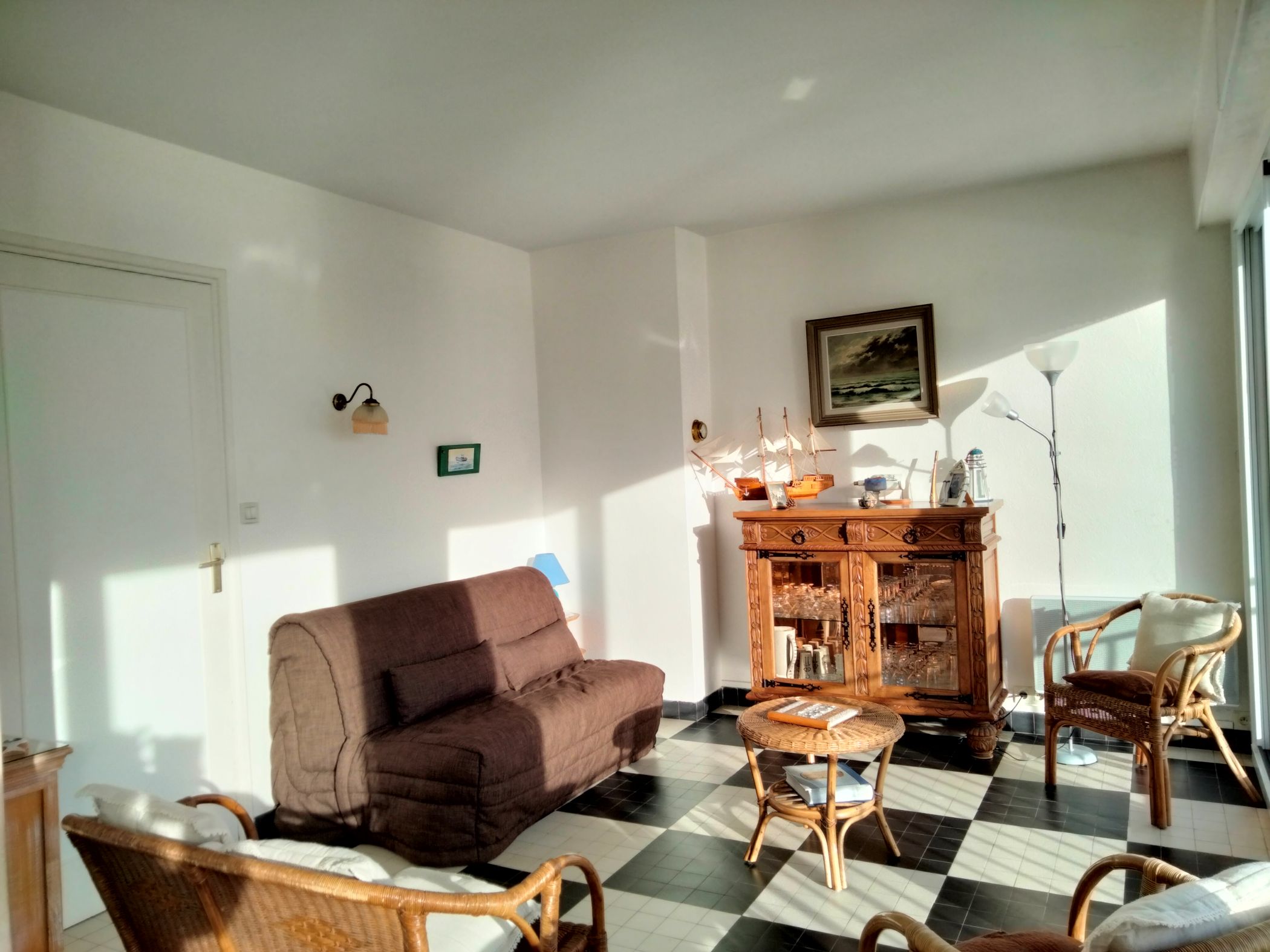 Appartement T3, face plage, 6ème étage avec ascenseur, à 400 m du centre ville - Salle de séjour avec balcon - Télévision - canapé-lit 2 personnes