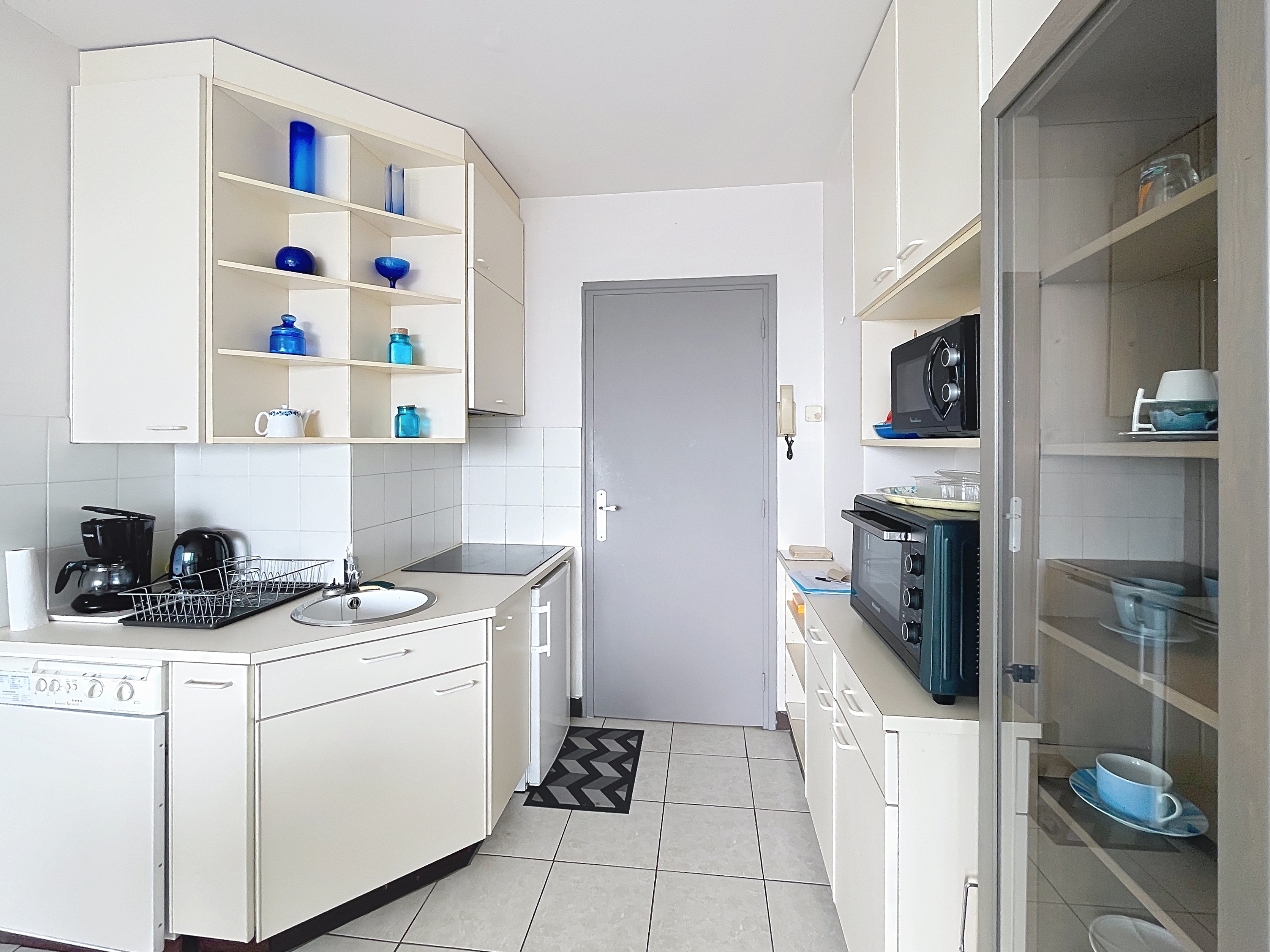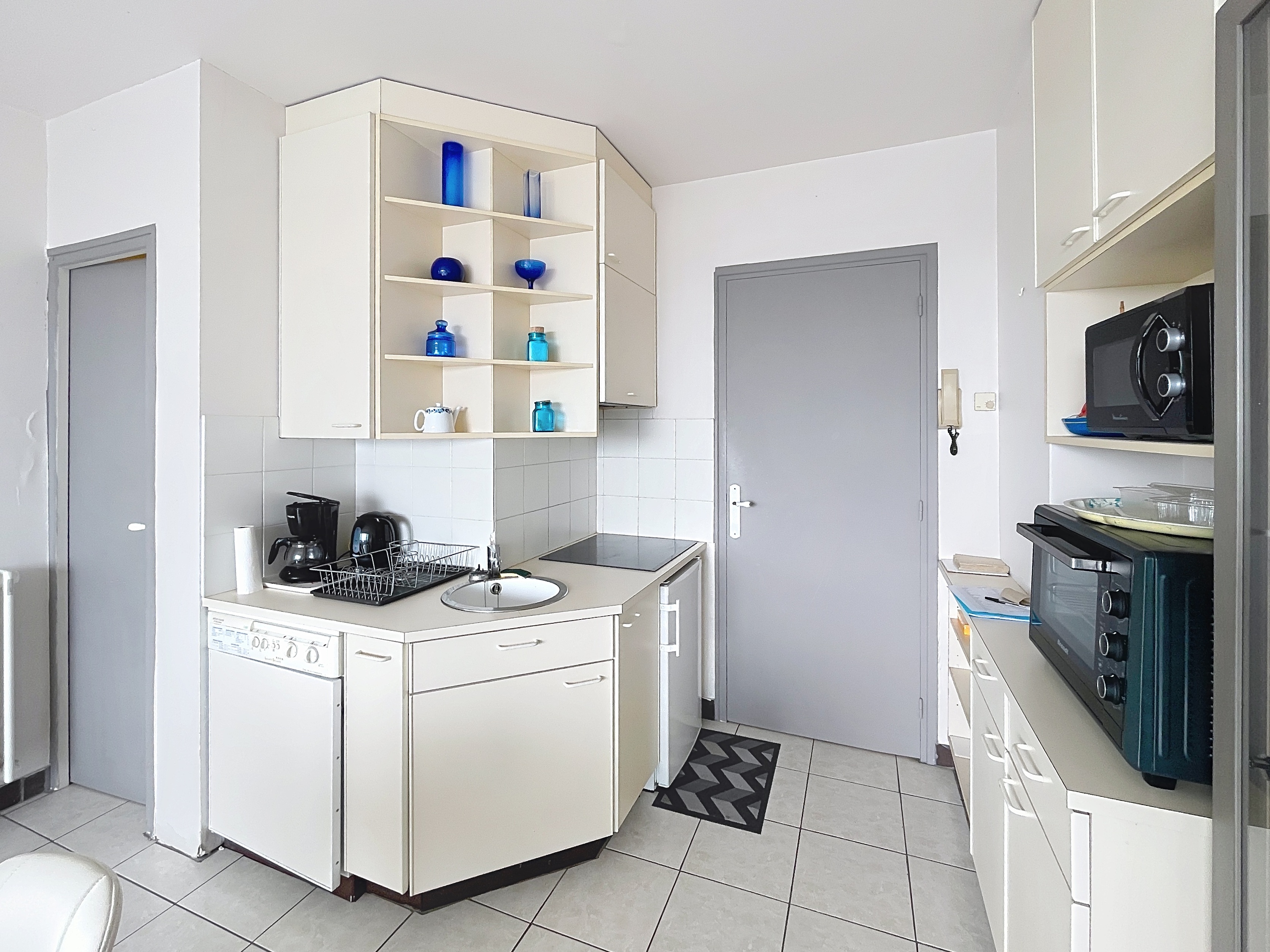 Coin cuisine incorporé : réfrigérateur top, 2 plaques, mini four,
