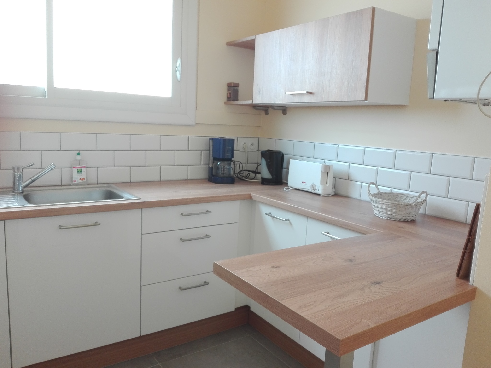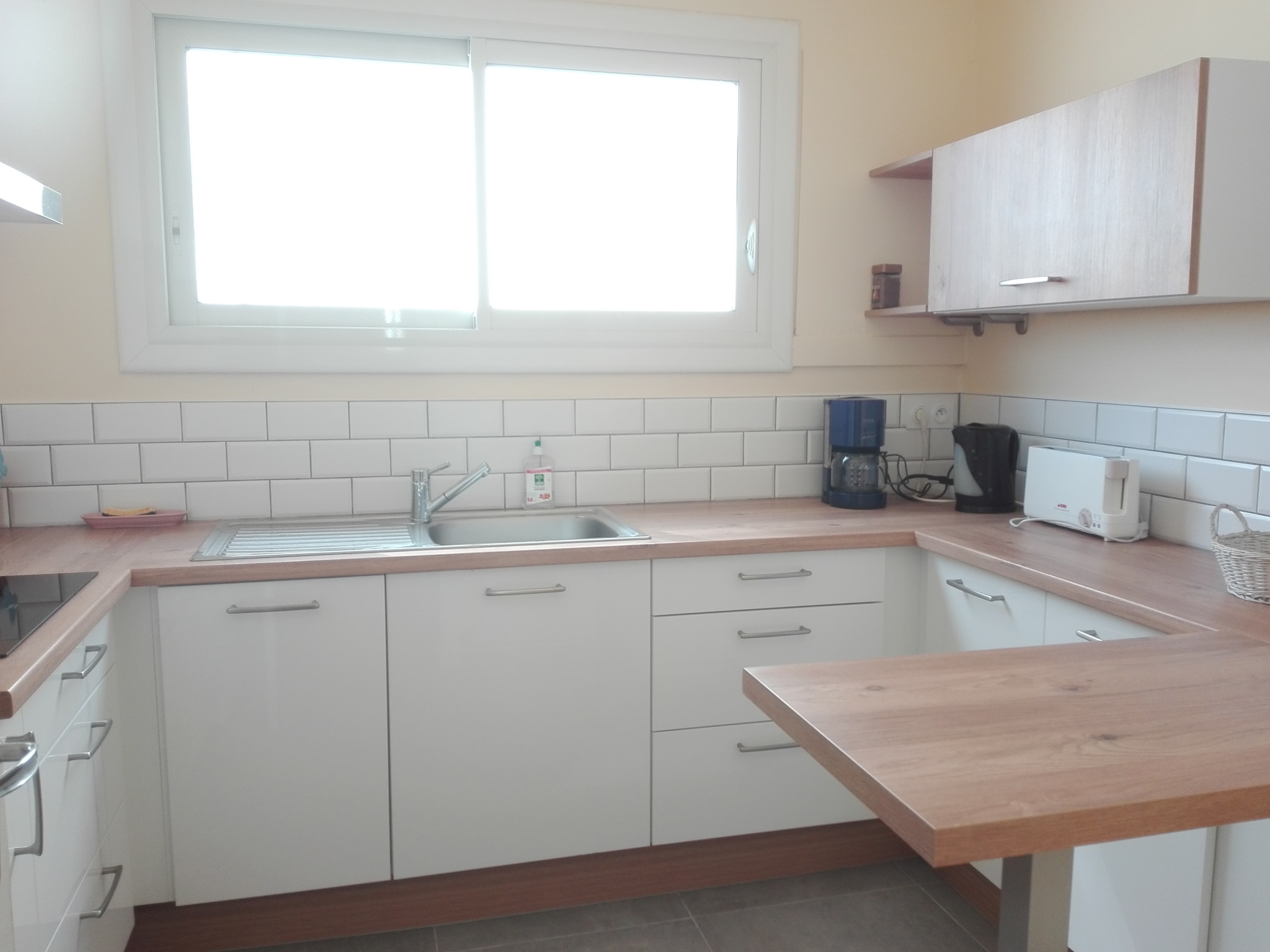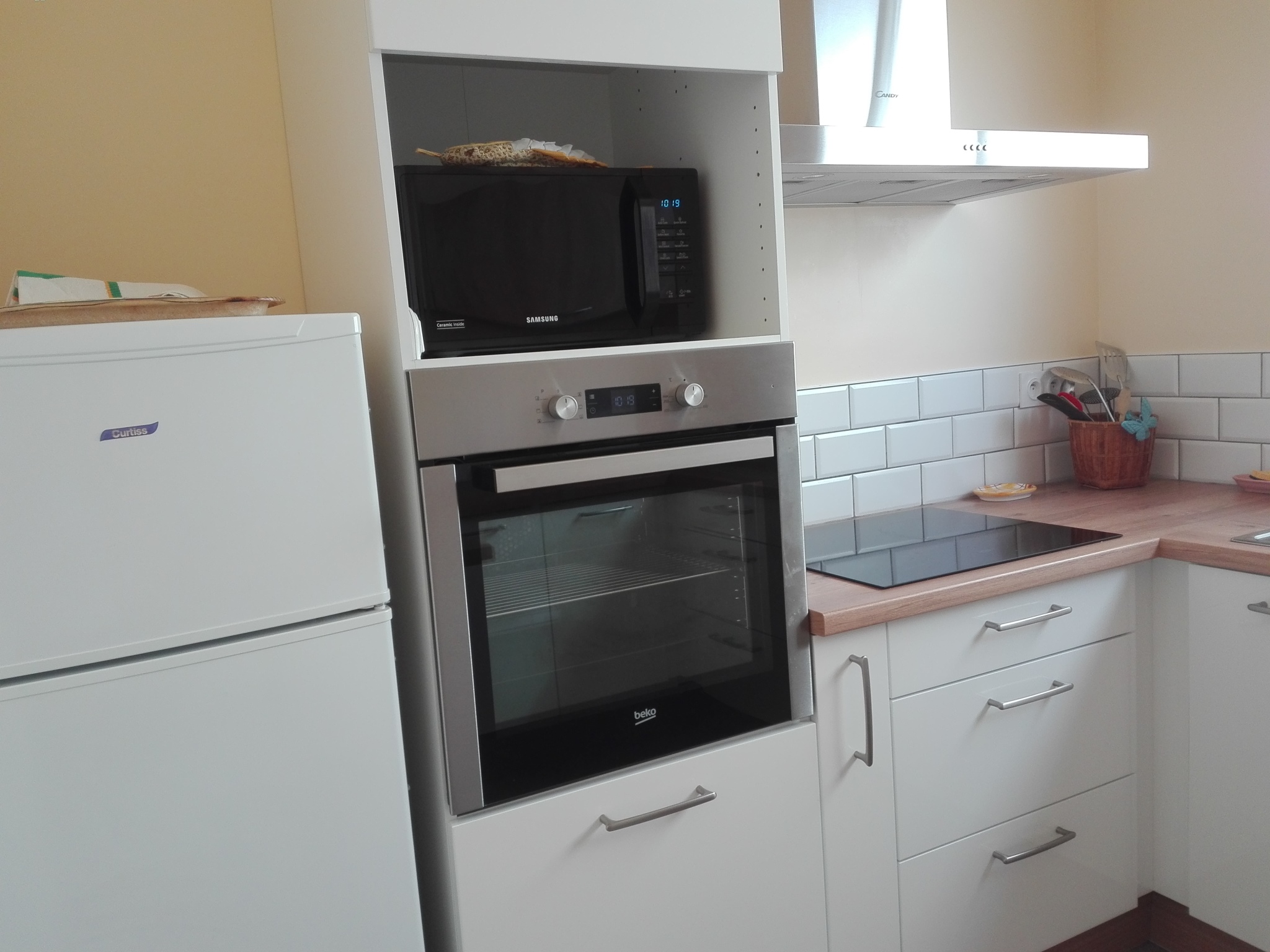Cuisine : réfrigérateur/congélateur, plaque à induction, four, lave vaisselle, micro-ondes
