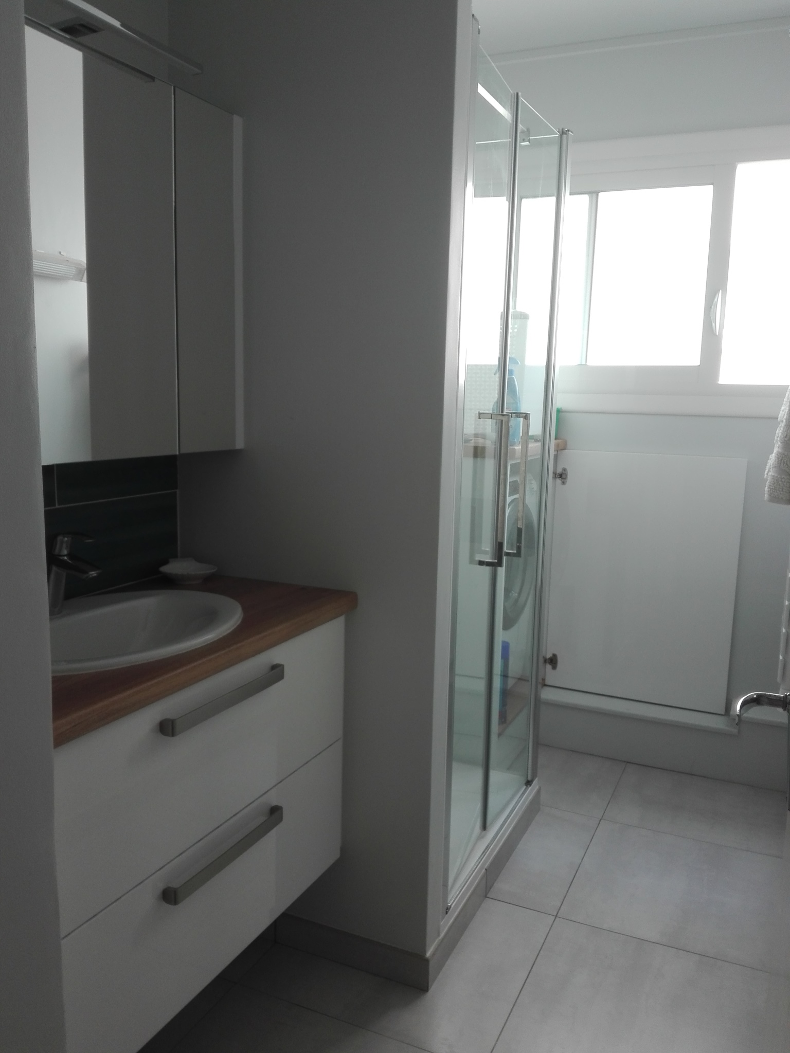 Salle d'eau avec douche, vasque sur meuble et lave-linge - WC indépendant