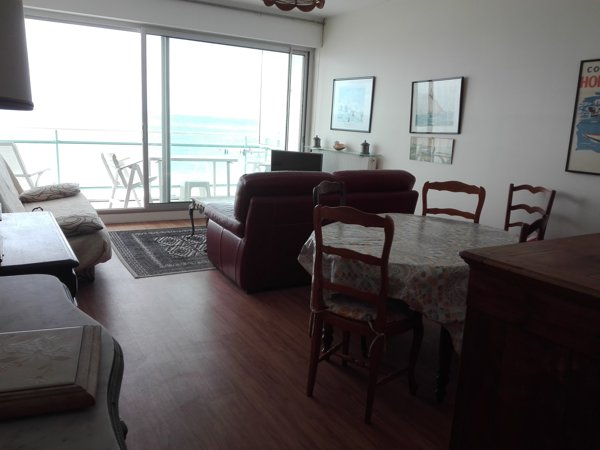 Entrée -séjour avec terrasse face plage (salon de jardin) -Télévision - 1 canapé lit 1 personne