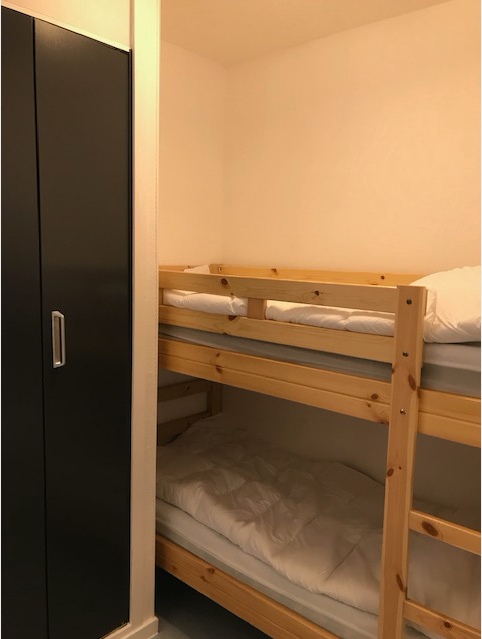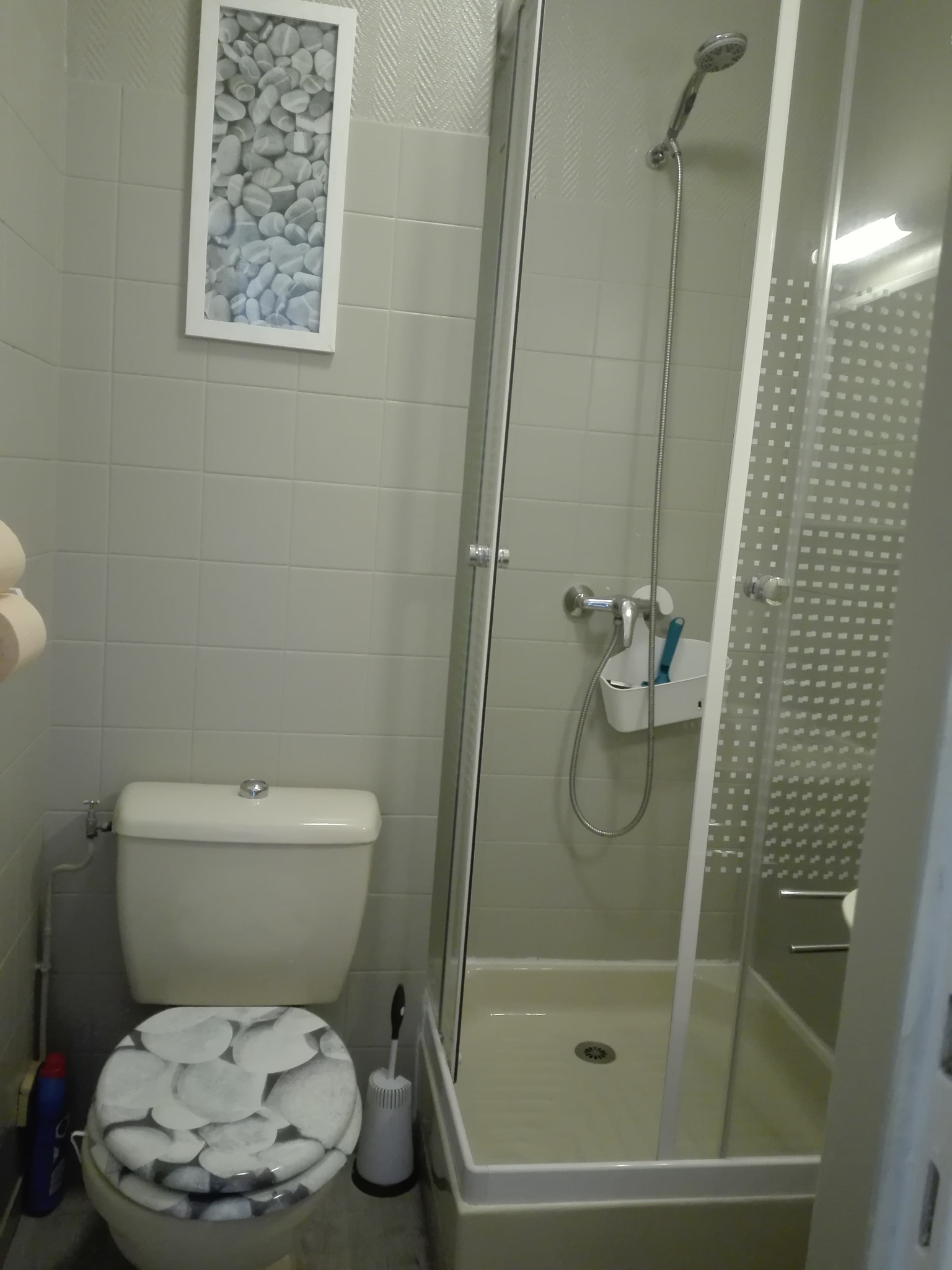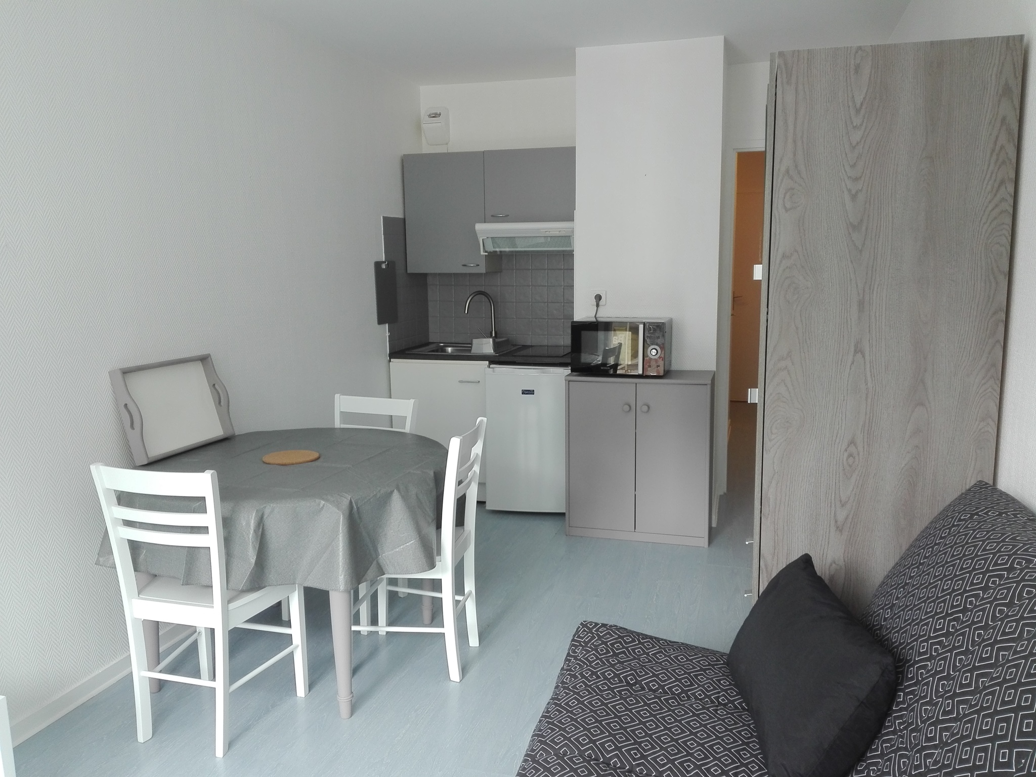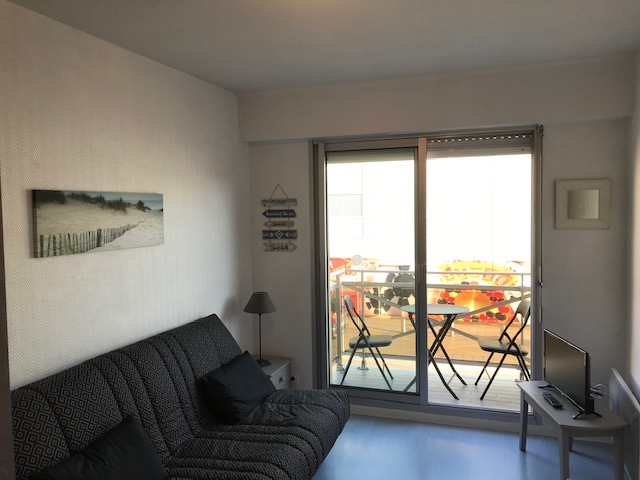 A 100 m de la plage et de la piscine du remblai - Agréable studio alcôve rénové au 1er étage d'une petite résidence : entrée avec placard et coin couchage pour enfants, 2 lits de 80 superposés, séjour avec balcon (clic-clac 140, tv écran plat, armoire), coin kitchenette (plaque vitrocéramique, hotte, micro ondes avec grill, réfrigérateur top), salle d'eau (douche, lavabo, wc). Balcon.